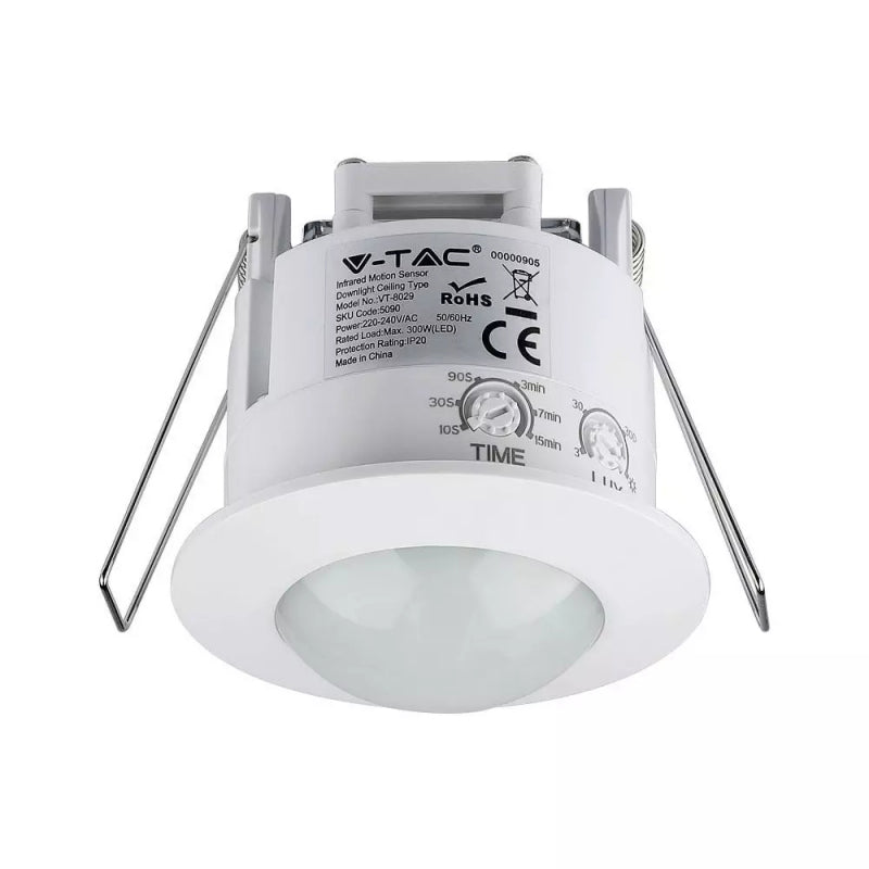 V-TAC VT-8029 (BIANCO) - SENSORE DI MOVIMENTO E CREPUSCOLARE A INCASSO - RILEVAZIONE 6 METRI - IP20
